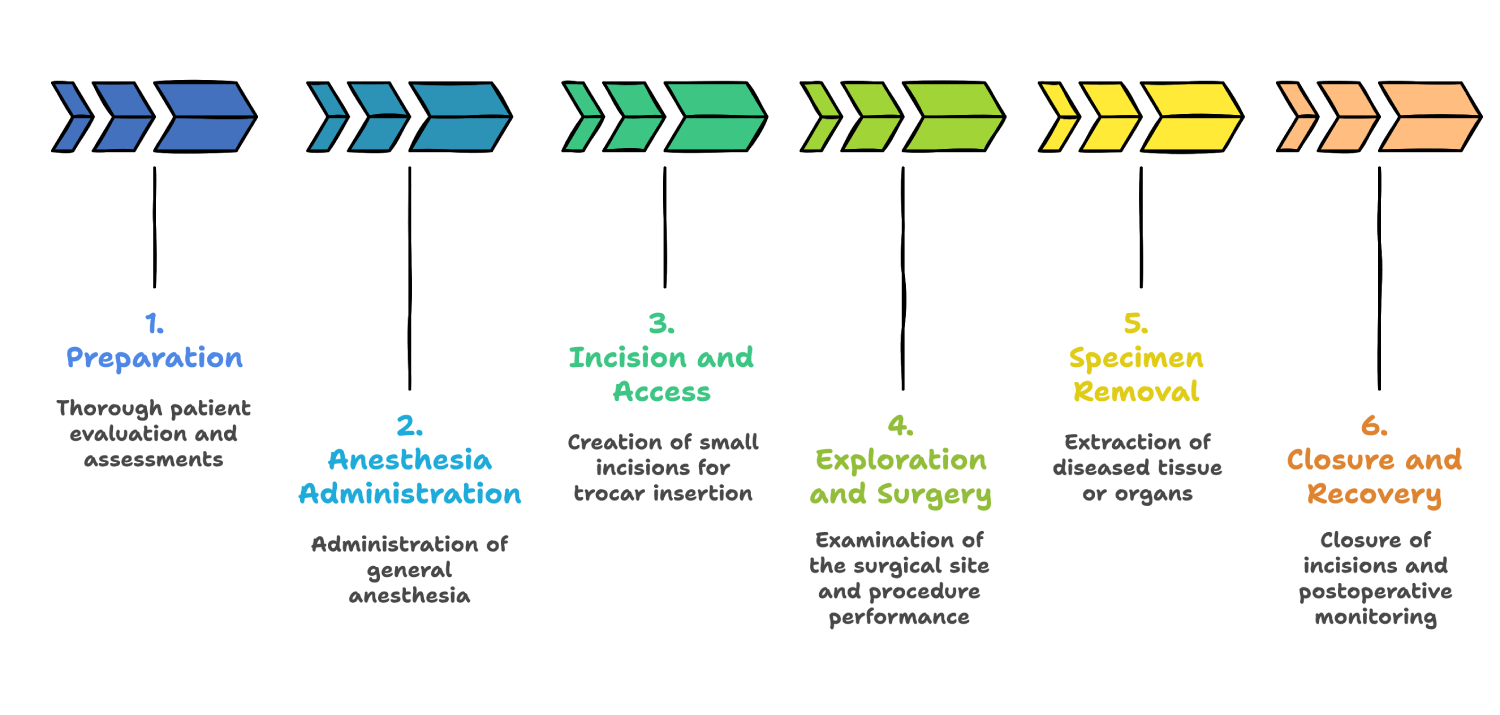 Closure and Recovery – Closure of incisions, release of insufflation gas, and close postoperative monitoring to ensure safe recovery.